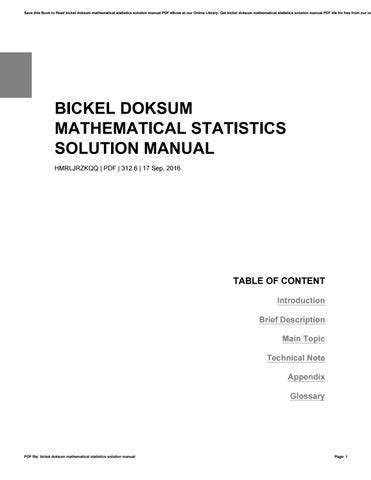Read bickel doksum mathematical statistics solution manual Epub By Click Button. bickel doksum mathematical statistics solution manual it’s easy to recommend a new book category such as Novel, journal, comic, magazin, ect. You see it and you just know that the designer is also an author and understands the challenges involved with having a good book. You can easy klick for detailing book and you can read it online, even you can download it